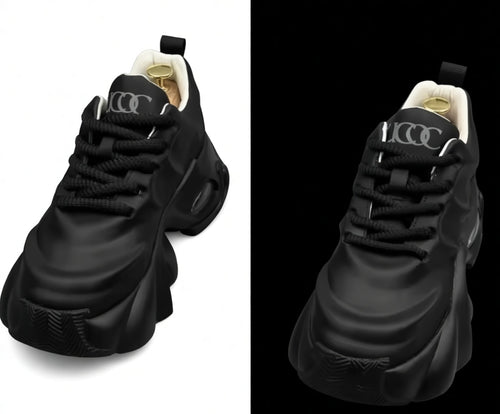 Intense Black Chunky Sneakers – Futuristic Design & Sculpted Oversized Sole